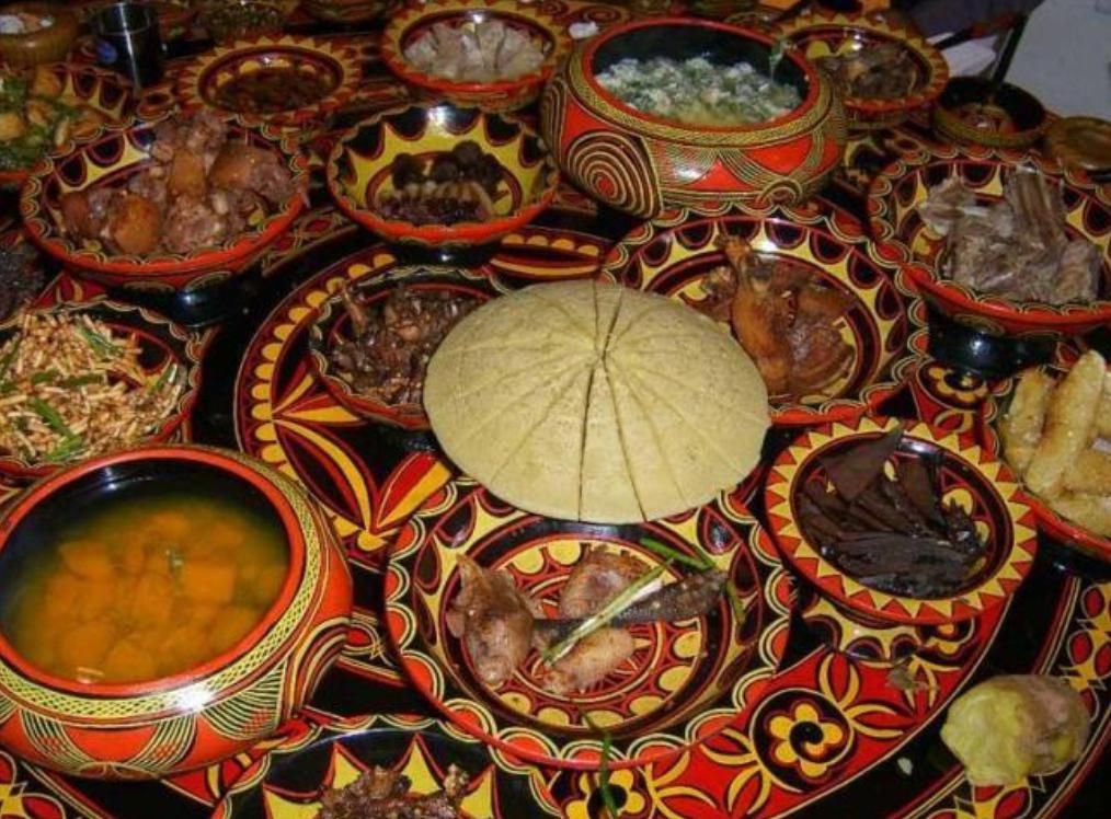 在吃方面,彝族人民的飲食習慣大多與漢人相同,只是主食以土豆、蕎麥、玉米等粗糧為主,其中比較有名的就是“彝族八大碗”,現(xiàn)代八大碗一般是清蒸魚,無量山烏骨雞湯,紅墩包肉,紅白豆腐,干酥肉,臘三線肉、吹泡肝拼盤(或排骨煮蘿卜),景東小炒肉,炒黑木耳干筍、糖藕、蛋卷或蒸豬膀。