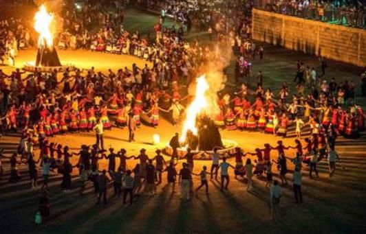 永仁縣彝族在同樣正月初二或初三奉行祭火,稱作開"火神會",涼山彝族把火塘看作是火神居住的神圣之地,嚴禁觸踏和跨越。而到了節(jié)日,各族男女青年點燃松木制成的火把,到村寨田間活動,邊走邊把松香撒向火把,或進行集會,唱歌跳舞,或賽馬、斗牛、摔跤。近代,人們利用集會歡聚之機,進行社交或情人相會,并在節(jié)日開展商貿活動。