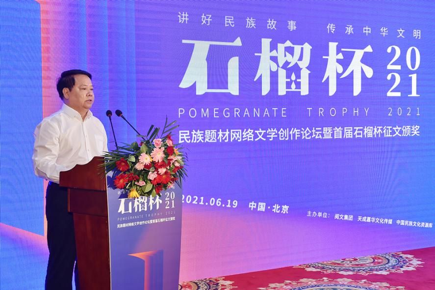 6月19日,民族題材網(wǎng)絡(luò)文學(xué)創(chuàng)作論壇暨首屆石榴杯征文大賽頒獎(jiǎng)典禮在京舉行。作為國家民委主辦的“中華民族全家?!毕盗谢顒?dòng)之一,首屆石榴杯征文大賽得到了國家民委文化宣傳司和中國少數(shù)民族文化藝術(shù)促進(jìn)會的指導(dǎo)與支持,由閱文集團(tuán)聯(lián)合天成嘉華文化傳媒、中國民族文化資源庫、中國民族文化資源網(wǎng)共同舉辦。本屆大賽以“講好民族故事 ,傳承中華文明”為主題,涌現(xiàn)出眾多弘揚(yáng)民族精神、表達(dá)文化自信、傳播正能量的作品。經(jīng)過專家推薦及嚴(yán)格評審,《草原有座蒙古包》、《走西口之天山行》、《彩云微光》等三部作品獲“最具民族風(fēng)采獎(jiǎng)”,《神藏》、《歡想世界》、《爛柯棋緣》、《時(shí)光和你都很美》、《恰似寒光遇驕陽》、《黎明醫(yī)生》、《暖君》、《驚雷》、《大訟師》、《消防英雄》等十部作品獲“優(yōu)秀作品獎(jiǎng)”。所有獲獎(jiǎng)作品都將收錄入中國民族文化資源庫。中國作家協(xié)會副主席、書記處書記吉狄馬加表示,本屆石榴杯大賽是在黨和國家長期以來堅(jiān)持的對民族文化、少數(shù)民族作家創(chuàng)作和民族題材創(chuàng)作的大力扶持下,依托網(wǎng)絡(luò)文學(xué)平臺,將文學(xué)作品與影視作品改編、游戲、動(dòng)漫產(chǎn)品制作結(jié)合起來,探索的一條發(fā)展民族文化的新路,具有開創(chuàng)意義。
