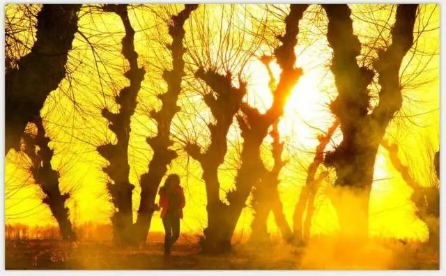 青蔥一段。是那些仙柳,年年綠遍。親瞻始信天工巧,看神態(tài)虬然,巨身如蜿。雕成寂寞,慣倚風(fēng)沙思念。放眼,在芳陌之間,碧河之畔。癡懷不共斜陽挽,有歸鳥纏綿,與它相戀。根生大漠,情系這般遼遠。