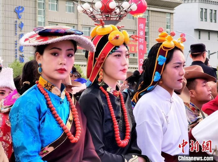 圖為圖為身著藏族服飾的民眾。 祁增蓓 攝