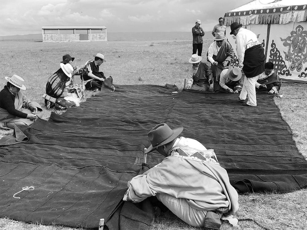 青海藏族黑牦牛帳篷制作技藝已有一千五百多年的歷史,它是藏族牧人主要的住家形式,在漫長的游牧歷史中,在艱苦的歲月中,黑牦牛帳篷給藏族牧民群眾賜予溫暖。青海藏族黑牦牛帳篷制作技藝主要分布在天峻縣新源鎮(zhèn)、木里鎮(zhèn)、江河鎮(zhèn)、蘇里鄉(xiāng)、龍門鄉(xiāng)、舟群鄉(xiāng)、織合瑪鄉(xiāng)、快爾瑪鄉(xiāng)、生格鄉(xiāng)、陽康鄉(xiāng)等地區(qū)。千百年來,當?shù)啬撩袢罕娭鹚荻?,在冬、夏季牧場來往遷徙,黑帳篷因攜帶方便,質(zhì)地厚重,冬暖夏涼,防風防寒、防雨防曬性能強,成為牧民生活中不可缺少的重要生活用具。