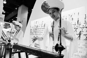 圖為兩名京族演員在表演京族獨(dú)弦琴。 新華社記者 馬寧攝