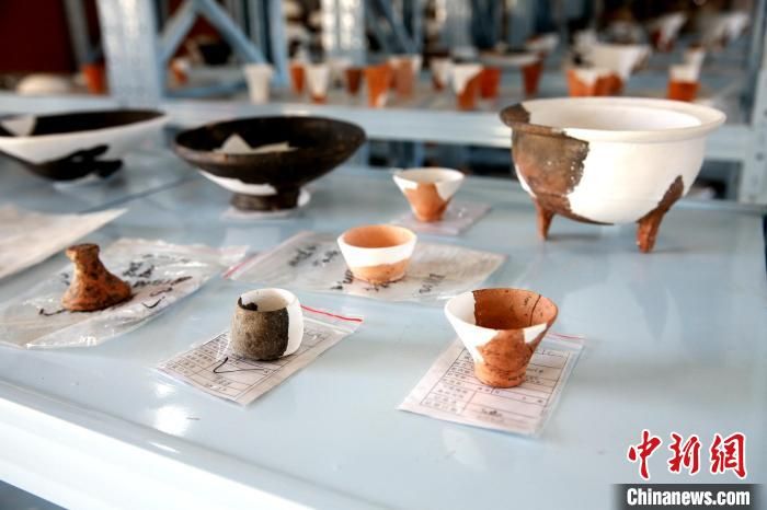 考古人員展示新發(fā)掘出土的“蛋殼陶杯” 楊東 攝