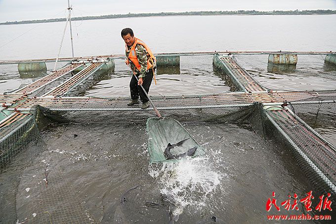 在黑龍江畔,通過網(wǎng)箱養(yǎng)魚做到既保證群眾的收入,又保護好黑龍江的魚類資源。