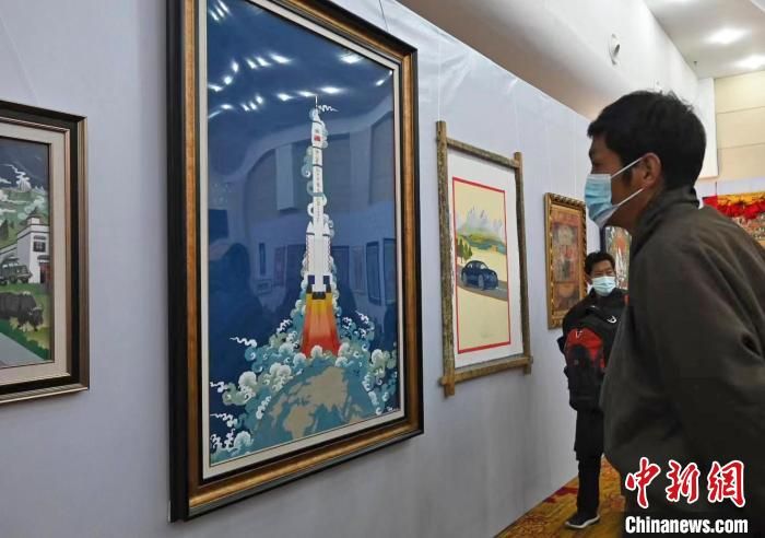 邊巴是作品《一飛沖天》的作者,這位畫師從1979年從事唐卡繪畫至今。他說,該作品以神舟十三號為主題,描繪了飛船沖出地球奔向星辰大海的瞬間。采用勉唐派唐卡繪畫語言和傳統(tǒng)礦植物顏料。同時融合了漢藏審美視角,立足于中國放眼世界的人類命運共同體胸懷,嘗試新時代新唐卡新融合的藝術(shù)表達。