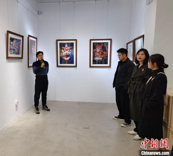 “醒獅、京劇臉譜……”濃厚亮麗的色彩會就的中國傳統(tǒng)民俗風貌,當晚在霸都書局亮相后,便吸引了很多青年藝術(shù)愛好者觀賞。