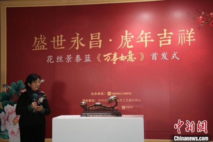 程淑美與花絲景泰藍(lán)新作《萬(wàn)事如意》在首發(fā)現(xiàn)場(chǎng) 李妮 攝