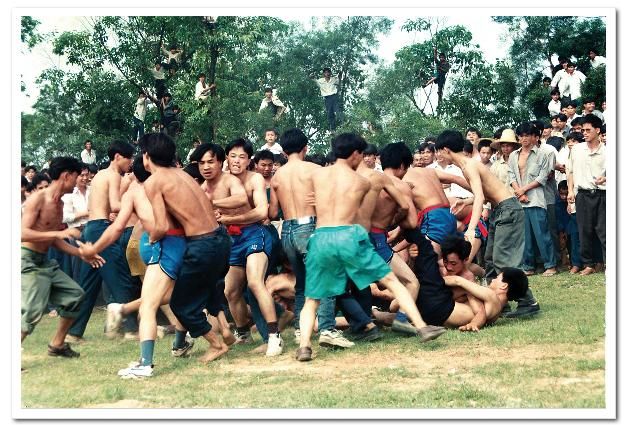 待賀節(jié)隊(duì)回到主會(huì)場(chǎng),花炮節(jié)正式開(kāi)始,首先是舞獅表演,接著蘆笙、卡羅舞表演,斗馬、斗鳥(niǎo)以及賽馬等活動(dòng)各自展開(kāi)。這些活動(dòng)告一段落后,最精彩的節(jié)目——搶花炮開(kāi)始了,人們像潮水般涌向主席臺(tái)前,圍成一個(gè)幾十個(gè)平方米的空地作搶花炮場(chǎng)地。搶花炮分一、二、三等,搶三次,得勝者,抬著漂亮的花炮頭及獎(jiǎng)品興高采烈地回村了。