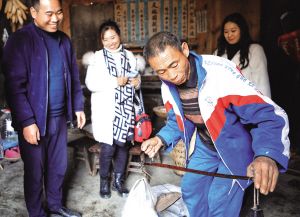 在村里修復(fù)舊屋的趙貢彩接到游客電話,馬不停蹄地趕回家中,自家手工制作的苕粉成了游客心心念念的香餑餑。拿出早已生銹的秤桿,一袋袋苕粉被游客搶著購(gòu)買。“都是留著自家吃的,哪想著能賣出去喲。”笑著說罷,趙貢彩拿出手機(jī),微信一掃,錢款立即到賬。