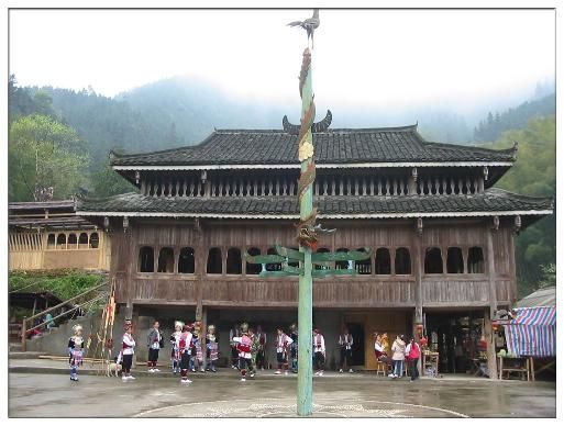 吊腳樓是苗族傳統(tǒng)建筑,是中國南方民族特有的古老建筑形式,樓上住人,樓下架空,被現(xiàn)代建筑學(xué)家認(rèn)為是最佳的生態(tài)建筑形式。吊腳樓是苗鄉(xiāng)的建筑一絕,它依山傍水,鱗次櫛比,層疊而上。是苗族最具特色的建筑。每棟木樓分上下兩層,按木樓的大小不同,下層從2-6排不等,因房子建在山坡上,地勢(shì)不同。里層一排為短柱,外面一排為長柱,柱子的上截柱頭都鑿有“十”字眼,用粗方條連成整體,為了支撐木樓的重量,下層屋多選用粗大的老杉木作柱子。最為奇特的是上下兩層柱子在結(jié)構(gòu)上是截然分開的,各自成體系。建房的時(shí)候先建底層,再建上層。上層屋柱的柱腳全“坐”在下層柱頭向外伸出的橫梁尾端上,垂下來約有一尺來長的柱腳就叫做“吊腳”。苗胞久住在高山,一年多數(shù)時(shí)間霧鎖云繞,但木樓較干燥,一般不容易患風(fēng)濕,但木樓較易燃燒,近年來,較富的苗胞也興建磚混房,但模式仍有所雷同。木樓中廳,干凈整潔,寬敞明亮,它不僅是苗族吃飯、休息、祭祀的場(chǎng)所,也是苗族人民講故事、唱苗歌、吹苗笛、拉果哈和男女談情說愛的地方。它成了苗族獨(dú)特的文化事象――火塘文化。