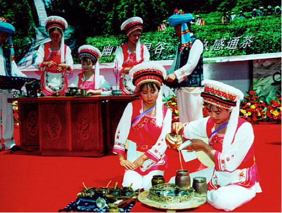 白族熱情好客,先客后主是白族待客的禮節(jié)。家中來了客人,以酒、茶相待。著名的“三道茶”就是白族的待客禮。但白族人倒茶一般只倒半杯,倒酒則需滿杯,他們認(rèn)為“酒滿敬人,茶滿欺人”。受到白族人熱情的款待,應(yīng)說聲“挪衛(wèi)你(謝謝)”來表示你的謝意和感激之情。