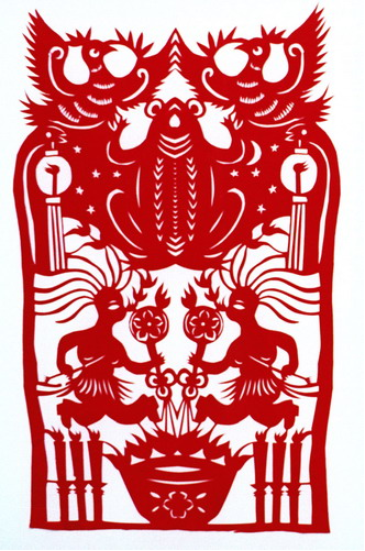 和林格爾剪紙有著悠久的發(fā)展歷程,世世代代在這里生活的北方游牧民族開(kāi)創(chuàng)了這里的剪紙藝術(shù)。和林格爾歷史上有眾多民族在這塊土地上生息繁衍,是北方游牧民族和中原農(nóng)耕民族交匯融合的重要地區(qū)之一,先后有土方、鬼方、獫狁、樓煩、林胡、匈奴、突厥、鮮卑、烏桓、契丹、女真、蒙古、滿(mǎn)等北方民族駐牧;后又有清代著名的“走西口”——清朝向西北用兵,在和林格爾開(kāi)辟驛站,大力開(kāi)發(fā)西部,山西、陜西等地農(nóng)民紛紛來(lái)此開(kāi)荒,在此定居,農(nóng)耕文化與草原文化再一次融合。這些為和林格爾剪紙的創(chuàng)作提供了肥沃的土壤;繼而逐漸形成了和林格爾剪紙獨(dú)具特色的藝術(shù)形態(tài)。目前,和林格爾縣 13 個(gè)鄉(xiāng)鎮(zhèn),4 萬(wàn)農(nóng)戶(hù),僅有 18 萬(wàn)多人口的和林格爾縣擁有業(yè)余剪紙人員超過(guò) 5000 人,年齡最大的近百歲,最小的僅有七八歲。