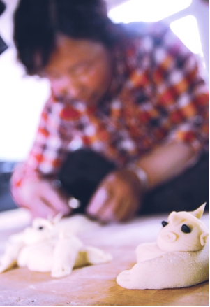 1、春節(jié)(過大年)來臨前,家庭婦女用白面捏制小狗、小貓、玉兔、魚娃娃、蓮花的面塑制品,上面點(diǎn)綴紅棗、花生等。以象征萬事如意,多福多壽、家庭和睦。