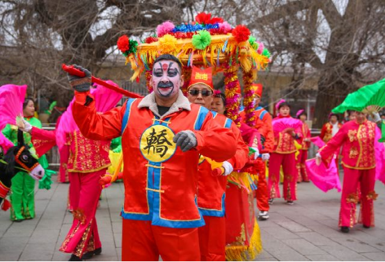 [資1]新城區(qū)討思浩村至今仍保留著過(guò)“天倉(cāng)節(jié)”的習(xí)俗,至今已有兩百多年歷史。每到農(nóng)歷正月二十五,討思浩村都要舉行象征五谷豐登的民間傳統(tǒng)節(jié)日——天倉(cāng)節(jié)。隨著鄉(xiāng)村振興戰(zhàn)略的不斷深入,農(nóng)民的生活水平也逐步提升,再也不需要“靠天吃飯”的新農(nóng)民也將對(duì)天地的祈禱轉(zhuǎn)化成了民俗活動(dòng)。經(jīng)歷數(shù)百年的沿襲,如今“天倉(cāng)節(jié)”這一民俗已成為討思浩村一個(gè)地域文化符號(hào),其中精彩紛呈的喜慶氛圍及獨(dú)特的民間傳統(tǒng)表演形式很受人們的喜愛(ài)。