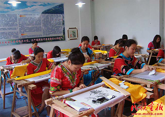 2015年,李紹玉榮獲年度“全國優(yōu)秀農(nóng)民工”。2016年,李紹玉成為重慶非物質(zhì)文化遺產(chǎn)——彭水苗繡的代表性傳承人。從一個打工女,到回家鄉(xiāng)帶動村民致富,再到成為全國人大代表,她說自己深感榮幸和責任重大?!翱偫韴蟾胬飳iT提到‘加強文物保護利用和文化遺產(chǎn)保護傳承’,我自己的成長,就得益于此。苗繡是苗族人民古老而美麗的技藝,我們有責任把它世代傳承下去。我們也要在苗族文化與手工藝術(shù)品融合上下功夫,使傳統(tǒng)工藝與市場結(jié)合、傳統(tǒng)元素與現(xiàn)代時尚相結(jié)合。”