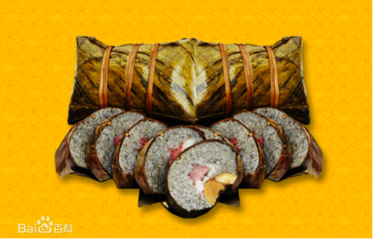 另一種是廣西壯族自治區(qū)寧明縣壯民在春節(jié)時(shí)做成的大壯粽。這種粽粑大得驚人,以芭蕉葉子包成,內(nèi)放一條剔去骨頭的腌豬腿,足有八仙桌那么大。包好的粽粑放在大水缸里,注滿清水,蓋嚴(yán)缸口。在大缸外面用稻草繩子繞滿。煮的時(shí)候,先點(diǎn)燃草繩。再在四周不斷加放谷殼,一連燒七天七夜,粽粑便熟透了。春節(jié)時(shí),歡樂(lè)的人民抬著大粽粑游街祭祖。然后同族的人分食這只吉祥的大粽粑,以示大家同心同德,和睦美滿。