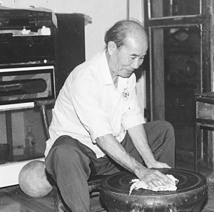 韋萬義出生在世界銅鼓之鄉(xiāng)東蘭縣蘭陽鄉(xiāng)一個偏僻山村的壯族農(nóng)民家庭里。他的家里祖?zhèn)魉接秀~鼓4面,家族集體所有5面,可算“銅鼓之家”。1974年,他到金城江辦事,隨意走走幾家舊收購店,發(fā)現(xiàn)一家店鋪收購有2面銅鼓,便對該店負責(zé)人說:“我想買你的銅鼓作道具,讓它回到民間,恢復(fù)它在民族文化生活中的作用,絕不能將好的銅鼓當作廢品處理?!痹谡鞯玫曛鞯耐庵?,他迅速返回家變賣一些家產(chǎn),把2只鼓買了回來。時隔不久,他又出差到金城江,發(fā)現(xiàn)另一家廢舊回收店也收到一面銅鼓,便找店主協(xié)商。最后又將家里常用的銅鍋、銅盆和魚網(wǎng)腳子拿去兌換回來。