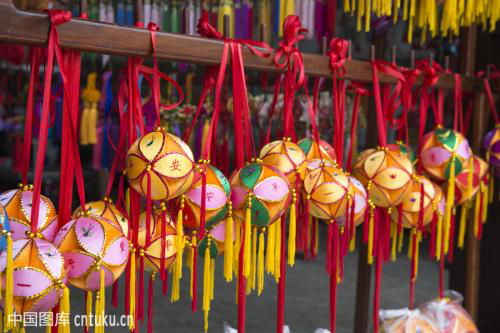 現(xiàn)今,壯家手工藝者們不斷為繡球這一古老藝術(shù)品注入新的活力,令其在新時(shí)代再次放出璀璨的光芒,廣西曾做過超大繡球供日本國立民族博物館收藏,同時(shí)為迎接港、澳回歸分別制作直徑達(dá)1.97m和2m的超大型繡球;為慶祝申奧成功,制作了直徑達(dá)2.2m的超大型繡球;為迎接中國——東盟博覽勝利召開,制作了直徑2m以上的超大型繡球等,廣西靖西縣舊州已成為重要的繡球生產(chǎn)基地。