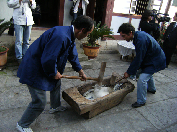 貴陽烏當區(qū)偏坡布依寨村民做打糕 老鐵供圖
