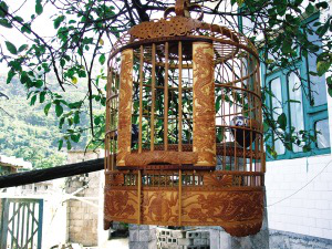 選材和傳統(tǒng)工藝是布依族鳥籠制作的兩大關(guān)鍵環(huán)節(jié)。最好的用材是優(yōu)質(zhì)畫眉竹、毛竹和青竹。竹材的采伐時間,有嚴(yán)格的要求,一般是在每年的秋收以后到第二年的正月間最為合適。其它時間采伐的竹材水性重,易蛀蟲。至于竹材,則以生長5到7年的竹子最為理想。這種年齡的竹料柔韌、堅硬、鮮亮。布依族鳥籠全由精雕細(xì)鏤的各式竹節(jié)(條)組合而成,構(gòu)成部件做工精細(xì)。雕飾分花、素兩款,樣式有方、圓兩類。雕花鳥籠,從取材到最后組裝完成,需10天左右。鳥籠雕刻圖飾有“雙鳳朝陽”、“二龍戲珠”和“蝴蝶結(jié)”等等。