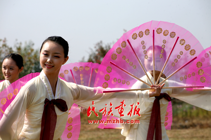 十月的延邊碧空如洗,大地歡歌;十月的山村層林盡染,稻谷飄香。這是農(nóng)民們最為向往的季節(jié),耀眼的陽(yáng)光給剛剛收獲過(guò)的土地鑲上了一層迷人的金邊,累累碩果被婦女們輕快地端上了餐桌。在寬闊的體育場(chǎng)上,彩球升騰、人聲鼎沸,一場(chǎng)盛大的慶?;顒?dòng)—農(nóng)樂(lè)舞表演即將拉開序幕……
