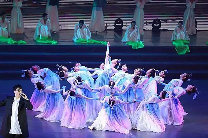 開(kāi)幕式結(jié)束后,中國(guó)朝鮮族音樂(lè)舞蹈史詩(shī)——《家園》在舞蹈《鶴舞》中拉開(kāi)序幕。