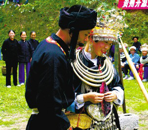 地處貴州省錦屏、天柱、劍河三縣交界處的九寨北部侗族社區(qū)山奇水秀,這里的婚戀習(xí)俗也獨(dú)具特色。當(dāng)?shù)啬信嗄?,往往都會?jīng)歷一段神奇、浪漫的談情說愛過程。他們把談戀愛稱作“玩山”,把約會地點(diǎn)稱為“花園”,而相戀過程一般經(jīng)過邀約、初會、架橋、念想、成雙或分散等階段。