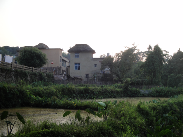 房屋建筑一般是土、木結(jié)構(gòu)的兩層樓房,墻基用石塊從地下半米深入砌至高出地面半米,便從基石上用土坯砌墻,用堅(jiān)實(shí)的圓形或方形木柱支撐屋檐或門(mén)樓。