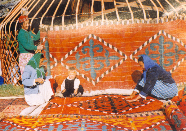 與此同時(shí),民間藝術(shù)是滿載著人民情感的載體,也是表達(dá)情意的信物。手工制作中的一針一線都融入了濃濃的深情和深深的愛意。哈薩克族民間藝術(shù)還有一個(gè)重要功能就是美化和裝飾。各類具有哈薩克民族特色的藝術(shù)品主要集中陳設(shè)在氈房中,氈房不僅是哈薩克族家庭生活的主要場所,也是人們賴以生存的空間,住所內(nèi)裝飾和陳設(shè)的各類民族藝術(shù)作品一方面充分展現(xiàn)了哈薩克族民間生活藝術(shù)的不同品類,另一方面也體現(xiàn)了哈薩克族人民生活的各個(gè)方面。總而言之,哈薩克族民間藝術(shù)體現(xiàn)了哈薩克族博大精深的民族文化,應(yīng)使之得以傳承與發(fā)揚(yáng)。