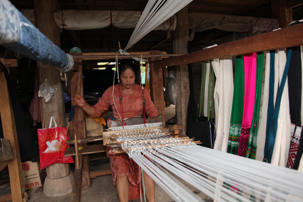 云南傣錦歷史悠久,風格古樸,以其織工精巧、圖案別致、色調(diào)鮮艷、堅牢耐用和富有民族特色而著稱。它主要流傳和盛行于云南省南部的西雙版納傣族自治州,西南部的德宏傣族景頗族自治州、耿馬傣族佤族自治縣、景谷傣族彝族自治縣,以及孟連傣族拉祜族佤族自治縣等傣族較聚居的區(qū)域。云南傣錦是一種以絲線、毛線、棉線、麻線、晴綸線、金絲線等材料為原料,采用傣族傳統(tǒng)的木架織機手工操作,經(jīng)提花、織造等工藝形式制作成的長條形織錦物,是云南的傣族人民從事宗教活動和美化生活必不可少的物品。傣錦長短不一,幅寬一般為20-60厘米不等。因其花紋絢麗多彩、形象生動、變化多端 、呈立體形,在云南少數(shù)民族織錦中獨樹一幟,享有很高的聲譽。傳統(tǒng)的云南傣錦按構(gòu)成形式和材料主要有兩種即西雙版納傣錦和德宏傣錦。西雙版納傣錦以白色為底,用紅色和黑色緯線織成花紋,傣錦線條寬窄有致,形體夸張簡練,圖案較為規(guī)律化,具有粗獷的質(zhì)樸感和濃厚的裝飾性;而德宏傣錦則色調(diào)較為濃重,常用黑、紅、翠綠、黃、藍等濃艷色彩的絲線和棉線摻用金絲錦線織制,圖案以菱形、方形、六角形及回形紋等幾何形為主,織錦鮮艷奪目,結(jié)構(gòu)嚴謹,紋飾古雅,尤顯華麗。