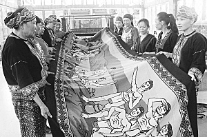 歷時一年時間織造,長186.7米黎族民俗風情長卷織錦壁掛《錦繡黎家》,日前喜獲上海大世界基尼斯世界紀錄證書,成為世界織錦項目之最。這幅黎錦長卷由海南省民族研究所織錦工藝研究人員設計,五指山鑫達民族織錦旅游開發(fā)中心于2012年4月初,在三亞檳榔河國際鄉(xiāng)村文化旅游區(qū)開始織造工作。