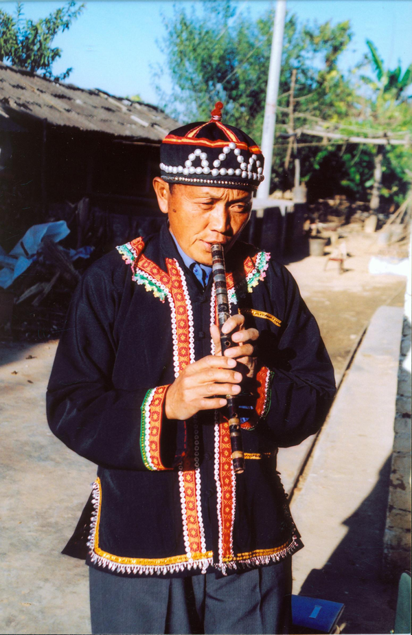 2.樂器。拉祜族的樂器多種多樣,大部分是自己動(dòng)手制作的。在瀾滄江以西的拉祜族(多數(shù)系拉祜納),喜愛的樂器是:葫蘆笙、蘆笛、哩嘎嘟、響蔑、稻谷桿笛、三弦、必嚕。鎮(zhèn)沅縣的拉祜族(主要是拉祜西),其流行的樂器有三弦琴、嗩吶、五管葫蘆笙、五眼竹笛、響蔑,還有芒鑼、桶鼓。景谷一帶的拉祜族(拉祜西)所常用的樂器有小號(hào)、大號(hào)、三弦、蘆笙、竹簫、二胡等。