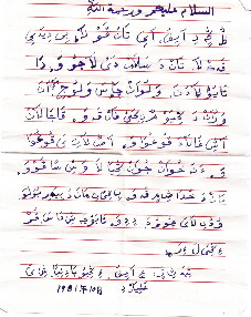普查小組征集到的上世紀(jì)80年代,遠在新疆的東鄉(xiāng)人用“小經(jīng)”文字給親戚寫的家信,內(nèi)容是索要戶口本。資料圖片