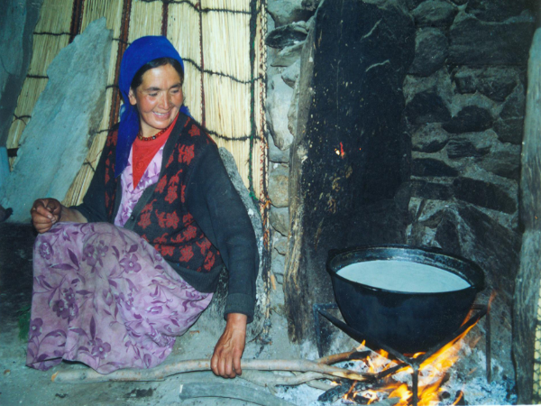 柯爾克孜族的氈房顏色潔白,下半部為圓形,上半部為塔形,以象征白雪和他們的搖籃——綿延起伏的山峰。它比哈薩克族和蒙古族的氈房略高而頂尖,也同樣具有冬暖夏涼、不存水積雪、拆裝快捷、搬運方便的特點。氈房主要由柳木、樺木、楸木制作的柵欄、支架、天窗架、門框組成。柵欄可伸縮,用4至5根木條,由駱駝皮條固定成菱形網(wǎng)格,一般的氈房需4至5塊柵欄。支架撐條的多少決定氈房的大小,一般從40根到上百根不等。柵欄外面圍上編有花紋的芨芨草簾,外覆白色圍氈和篷氈,用織有花紋的毛織帶綁扎。天窗頂部有一塊活動的3至4平方米的天窗蓋氈,在夜晚或風(fēng)雨天時用毛氈繩拉動蓋在天窗上,以防風(fēng)遮雨。隨著時代的發(fā)展,柯爾克孜族的氈房也在發(fā)生著變化,傳統(tǒng)氈房之外覆蓋的羊毛氈裸露在外,經(jīng)過長期的風(fēng)吹、日曬、雨淋,往往會出現(xiàn)殘破變色、變薄的現(xiàn)象,有些時候還會漏雨、透風(fēng),使氈房的防風(fēng)保暖、御寒保溫的作用大大降低。現(xiàn)在柯爾克孜族人們在搭建好氈房之后,會在羊毛氈之外額外覆蓋上一層薄的透明塑料材料,不僅避免氈房直接與陽光、雨水接觸,而且還提高了氈房的保暖性能,極大地延長了氈房的使用壽命。