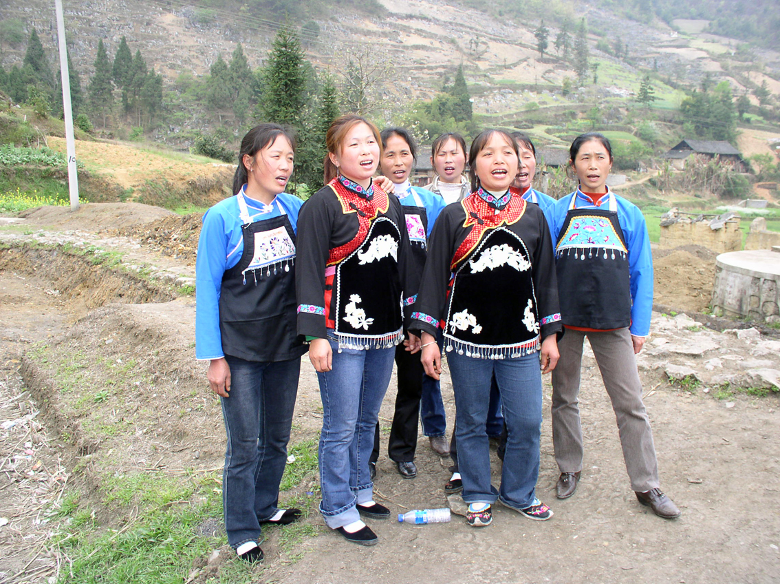 “比”和“歡”主要用來(lái)抒。按內(nèi)容來(lái)說(shuō),“比”多唱苦歌,“歡”多唱祝賀歌、儀式歌?!氨取焙汀皻g”均為同聲二重唱的二聲部山歌,且多為短歌。