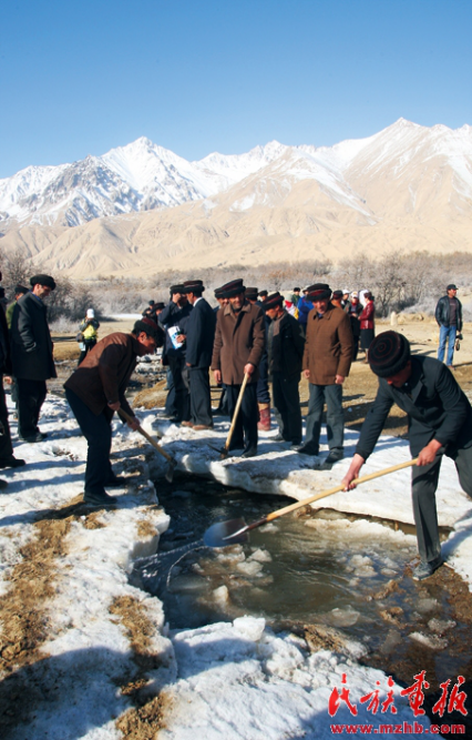 塔吉克人破冰引水,為春耕做好準(zhǔn)備。袁東平 攝影 引自民族畫報(bào)