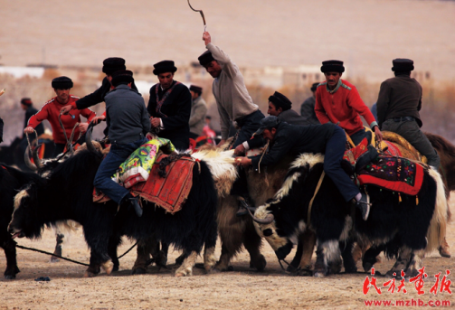 塔吉克族獨(dú)有的騎牦牛叼羊 袁東平 攝影 引自民族畫報(bào)