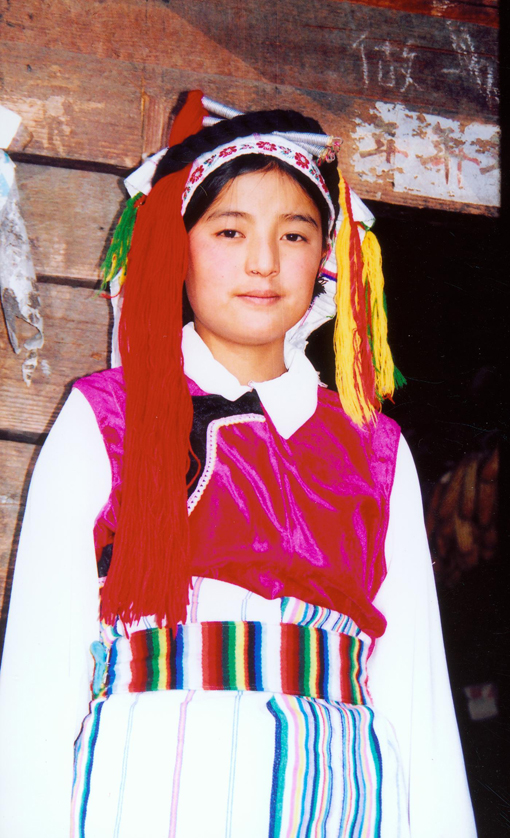 蘭坪型服飾則受當(dāng)?shù)匕鬃搴蜐h商的影響較深?!暗刂髅薄笔降膱A頂小帽、對(duì)襟長(zhǎng)衫和馬褂等裝束,向我們展示了處在礦產(chǎn)資源開(kāi)發(fā)區(qū)域的民族群屬,其傳統(tǒng)著裝也因頻繁接觸外界文化而受到影響,并有所改變。