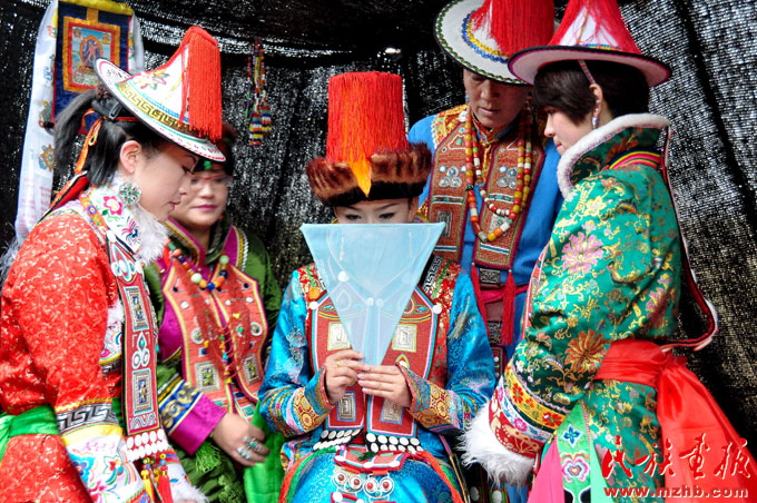 包辦婚姻與漢族相似,正式婚禮過(guò)程中有提親、訂婚、戴頭面、送親、打尖、踏房、射箭、堯達(dá)曲格爾等一系列古...