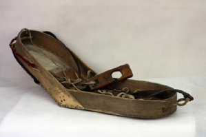 搖籃是鄂倫春族的傳統(tǒng)育嬰工具(如圖,吳雅芝供圖)。游獵時(shí)期居無(wú)定所,騎馬游動(dòng)的時(shí)候母親把搖籃背在背上,孩子餓了,只需把搖籃轉(zhuǎn)到胸前就可以喂奶,不必下馬。有人在搖籃頭頂部位掛三個(gè)束紅腰帶的黑布小人,作為孩子的護(hù)身符,據(jù)說(shuō)能保佑孩子健康成長(zhǎng)。也有人在搖籃頭部?jī)蓚?cè)掛木刻的小老鼠和小鳥(niǎo),預(yù)示孩子像小老鼠一樣伶俐機(jī)智,像小鳥(niǎo)一樣展翅飛翔。