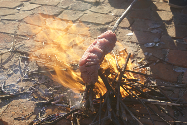曬肉干,赫哲語叫“胡烈克特”。通常用鹿、狍、野豬、熊等獸肉制作肉干。把動(dòng)物的皮剝?nèi)ヒ院?,將四肢和里脊部位的肉取下來切成小塊,用木棍串上烤熟,然后切成小塊,曬干后儲(chǔ)存起來。曬肉干可以當(dāng)干糧吃,也可以用開水浸泡后燉著吃。