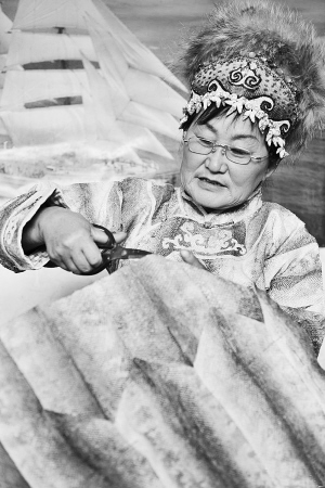 2006年,尤文鳳被授予“國家級(jí)非物質(zhì)文化遺產(chǎn)項(xiàng)目赫哲族魚皮制作技藝傳承人”稱號(hào)。尤文鳳說:“前一陣搜集到一本中國早期人類學(xué)家林春生寫的《松花江下的赫哲族》。按照書里所記載的,現(xiàn)在我正在全力恢復(fù)古老的魚皮衣樣式,從款式到花紋都要原封不動(dòng)地繼承下來?!?/p>