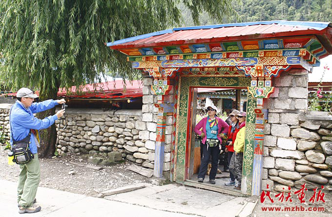 在珞巴族家門前留影紀念的游客絡(luò)繹不絕(列來拉杜 攝影)