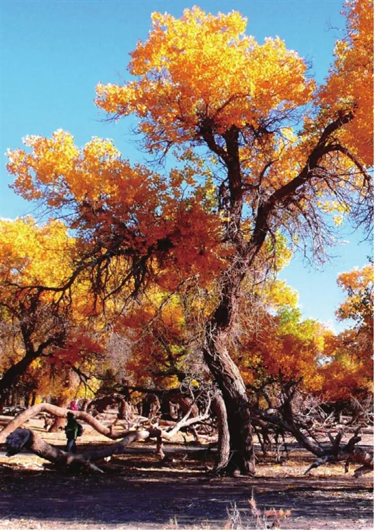 胡楊是當(dāng)今世界上最古老的楊樹品種,被譽(yù)為活著的化石樹。據(jù)說胡楊樹活著一千年不死、死后一千年不倒、倒后一千年不朽。錚錚鐵骨千年鑄,不朽品質(zhì)萬年頌。四子王旗境內(nèi)生長(zhǎng)著我國(guó)第三片胡楊林,千百年來它們矗立北疆,守護(hù)著大漠邊關(guān),被當(dāng)?shù)啬撩褡u(yù)為大漠守護(hù)神。