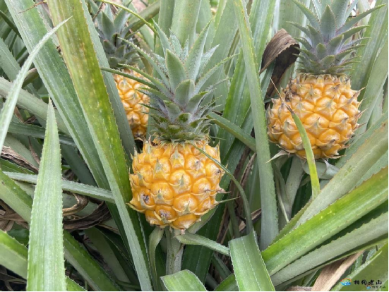 “我現(xiàn)在再砍去一些菠蘿的葉子,防止采收時割傷,同時讓太陽曬到菠蘿,讓菠蘿更好吃。”菠蘿地里,金黃的菠蘿隱藏在綠色的“皇冠”和葉片之下,馬停紅正在修剪菠蘿葉。