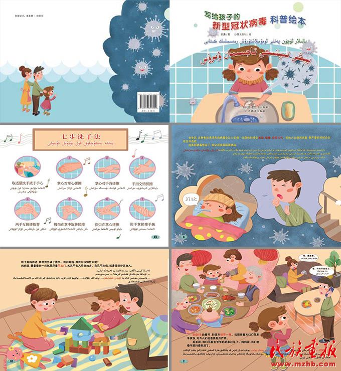 喀什維吾爾文出版社聯(lián)合出版的《寫給孩子的新型冠狀病毒科普繪本》(漢維對照版、電子版)。
