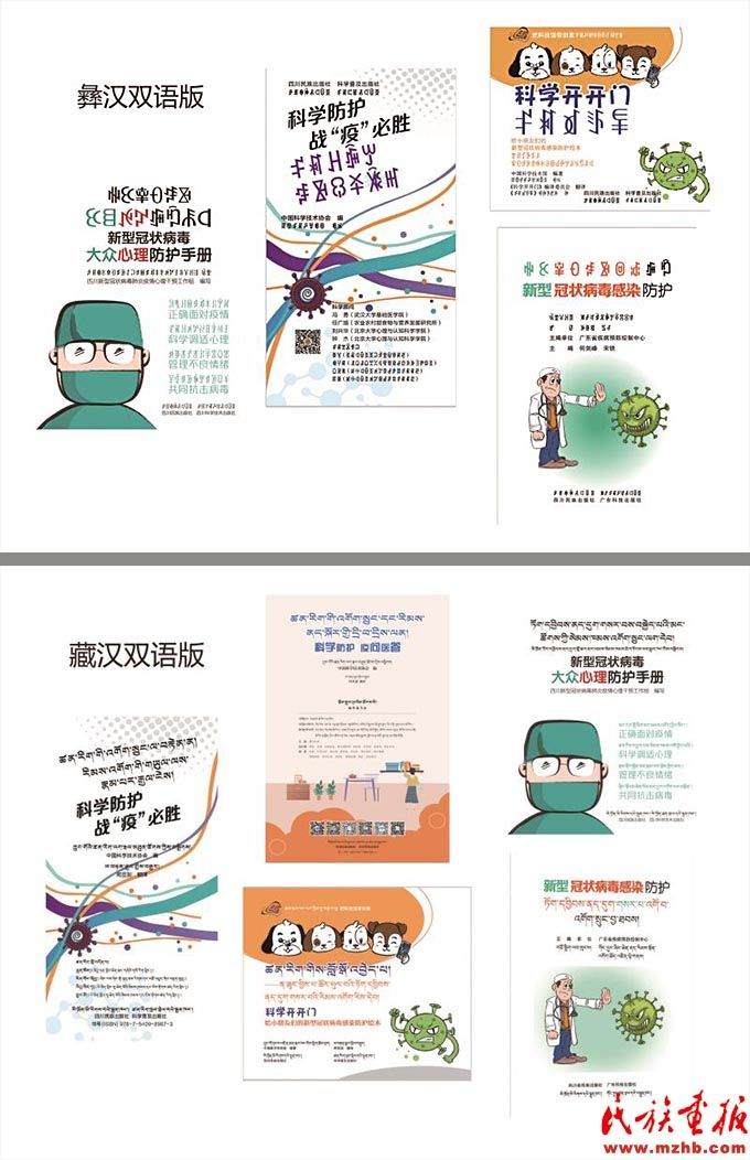 四川民族出版社出版的《新型冠狀病毒感染防護》(藏漢雙語、彝漢雙語)紙質(zhì)圖書。