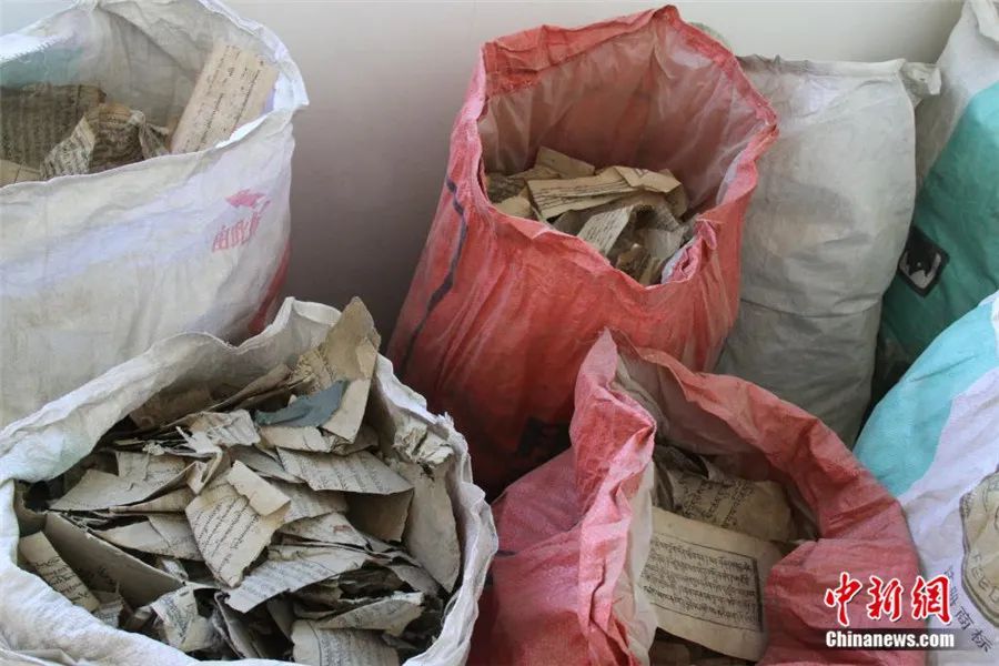 挖掘工作持續(xù)了3天才結(jié)束。由于當(dāng)時(shí)寺院條件簡陋,古籍散葉被臨時(shí)裝入編織袋中,足足裝滿了68袋。