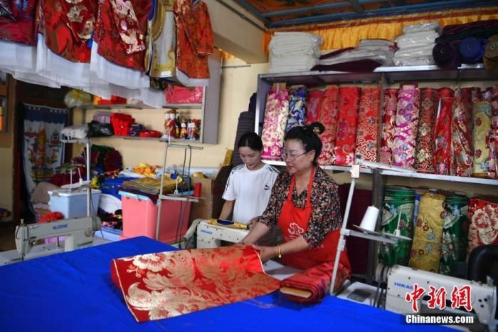 如今,年輕的邊宗正式繼承了母親提美的衣缽,成為藏服制作傳承人。邊宗一邊縫制衣服一邊對記者說,藏服工序繁雜,一會(huì)兒要手工,一會(huì)兒又要裁剪,一會(huì)兒又機(jī)器縫……